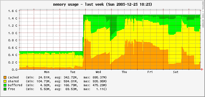 another 1 GB was added. Now the server have 1.5 GB of RAM. This sould improve the performance both as a network server and